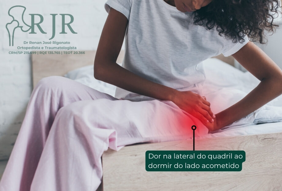 Sintoma da Síndrome Dolorosa do Grande Trocânter: Dor na lateral ao dormir sobre o lado inflamado.
