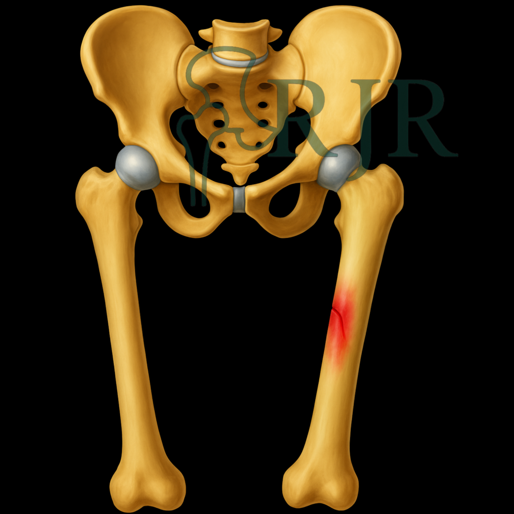 O fêmur é o osso mais longo e resistente do corpo humano. As fraturas nessa região costumam ocorrer por traumas de alta energia, como acidentes de trânsito, em pacientes mais jovens, ou por quedas simples em idosos, especialmente quando há osteoporose.